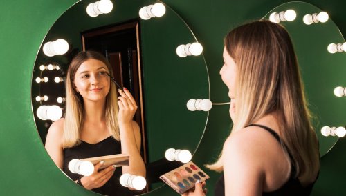 • с лампочками – гримерный стиль, всё видно до мельчайших деталей.