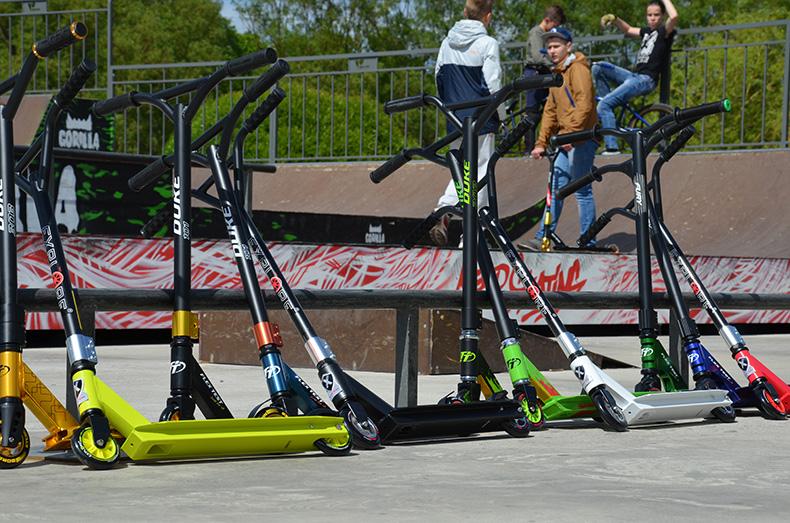 - Стрит. Широкая дека, прочный стальной руль, 120 мм колёса, монолитные сердечники, контроль на перилах и бордюрах.