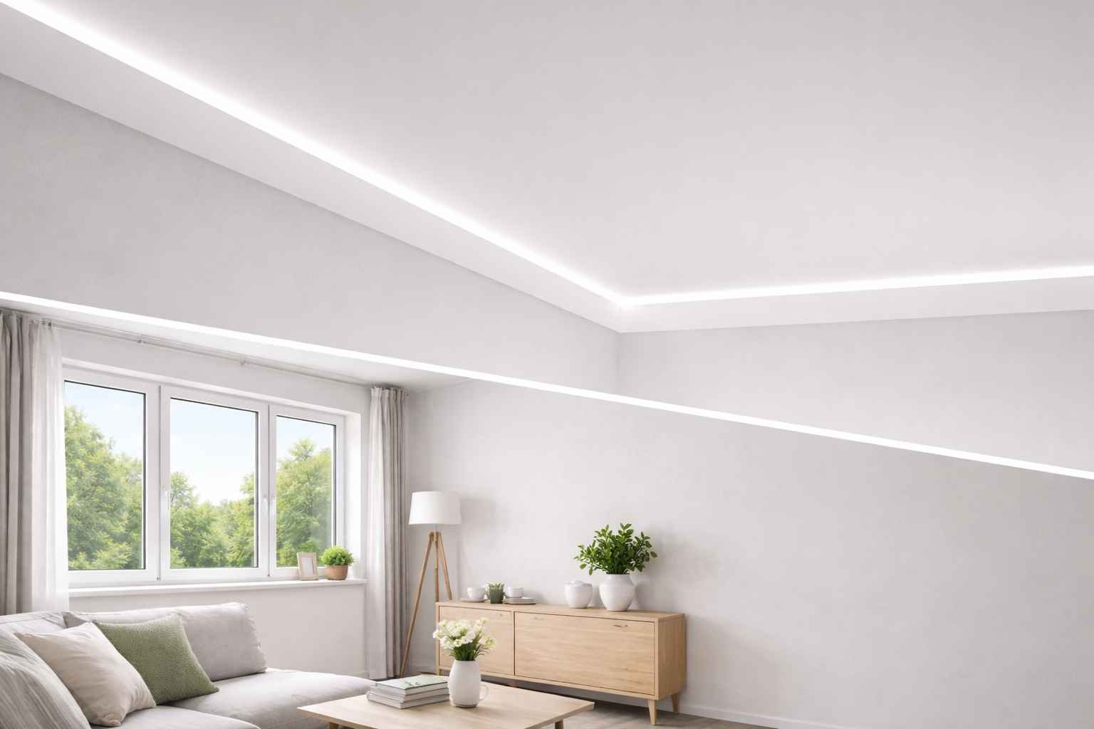 Теневой профиль для потолка выглядит довольно простой деталью. Снаружи это аккуратная линия между потолком и стеной. Чаще всего именно там появляется мягкая подсветка. Но внутри теневого профиля скрыта продуманная конструкция. Она решает сразу несколько задач – крепление листовых материалов, формирование ниши под LED-ленту и защита отделки.